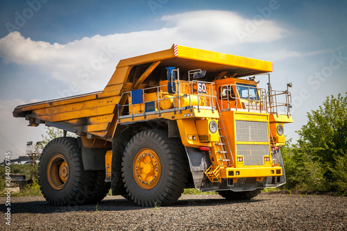 © Alex, Fototapeta premium yellow dump truck on the road