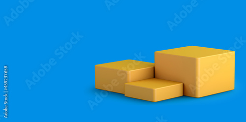 Obraz premium Yellow duotone podium on blue background. 3d illustration.
