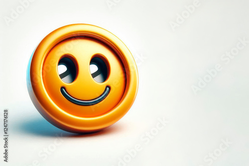 © Andbiz, Obraz premium Yellow emoji button on a light background. Space for text.