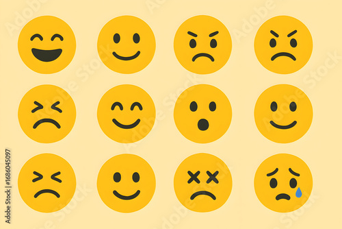 © Jazmi, Obraz premium Yellow Emoji Faces Seamless Pattern