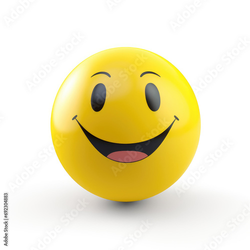 © Rasheeda, Fototapeta premium Yellow emoji with smiley face on white background