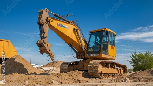 © Василь Тігай, Obraz premium Yellow Excavator in Construction Site
