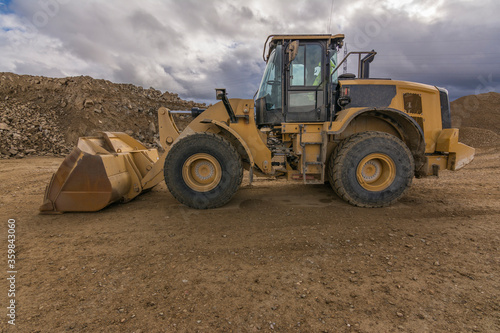 © Enrique del Barrio, Obraz premium Yellow excavator moving earth at a construction site
