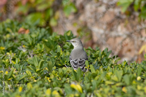 © Elizabeth, Obraz premium yellow eyed gray bird in bushes