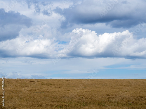 © Sergey, Obraz premium Yellow field and sky with large cumulus clouds