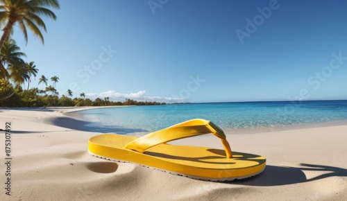 Obraz premium Yellow flip-flops on the beach