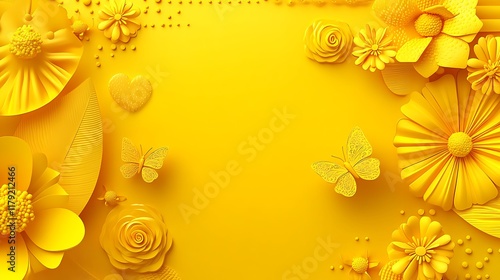 © lisa, Obraz premium Yellow Floral Design With Butterflies And Heart