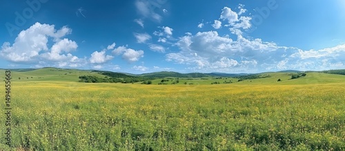 Obraz premium Yellow Flower Field Under Blue Sky