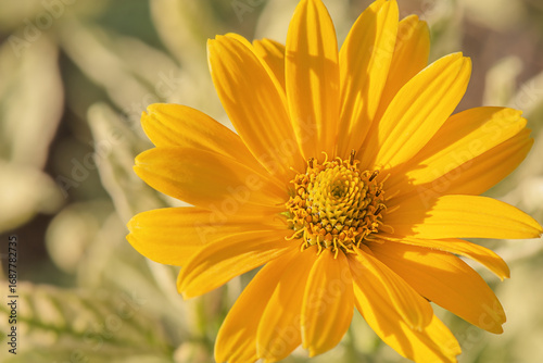 Fototapeta premium Yellow flower macro photo on blurred natural background. Heliopsis in the...