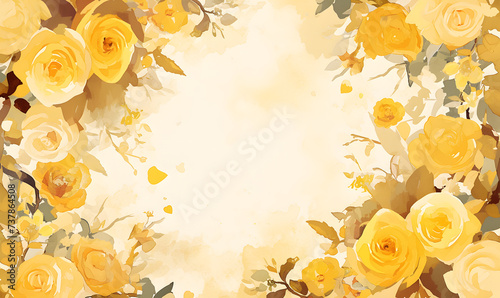 © simba kim, Naklejka premium yellow flower rose frame watercolor background, Generative AI