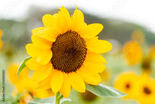 Naklejka premium Yellow flower, Sunflower in the garden, abundance field with blur background.