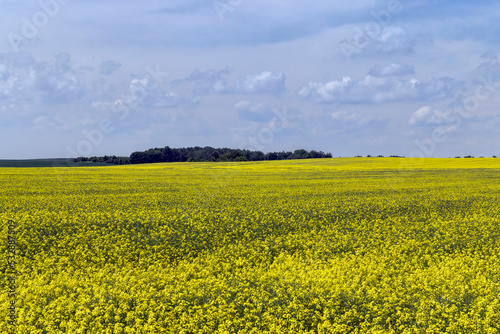 Fototapeta premium Yellow-flowering rapeseed in the summer