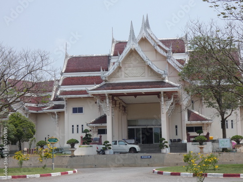 © JAMNIAN, Fototapeta premium Yellow flowers and buildings in the park