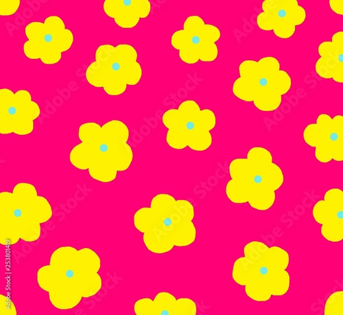 Fototapeta premium Yellow flowers pattern on pink background