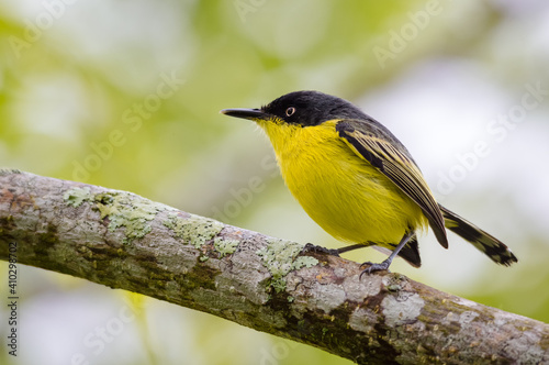 © J Esteban Berrio, Naklejka premium Yellow flycatcher in search of food on top of a tree