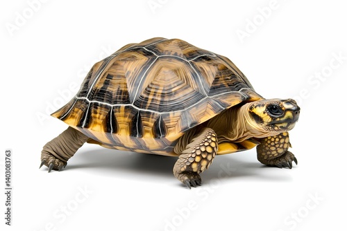 © Saff, Fototapeta premium Yellow-footed tortoise walking, white background, reptile pet