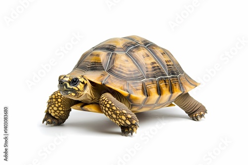 © Saff, Fototapeta premium Yellow-footed tortoise walking, white background, wildlife, nature, reptile