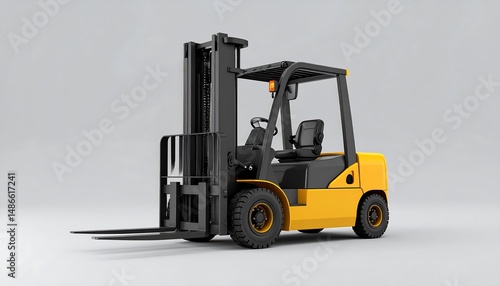 © Luxetify, Fototapeta premium Yellow Forklift Industrial Vehicle on Grey Background Studio Shot