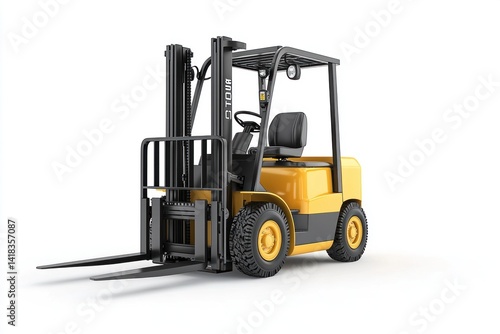© IES Astro Stock, Fototapeta premium Yellow Forklift Truck isolated on white. Forklift . Construction Vehicle. Industrial Forklift Machine. Heavy Forklift Truck on white. Forklift Truck isolated on white. Logistic and Cargo Concept.