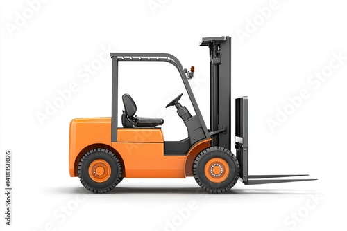 © IES Astro Stock, Fototapeta premium Yellow Forklift Truck isolated on white. Forklift . Construction Vehicle. Industrial Forklift Machine. Heavy Forklift Truck on white. Forklift Truck isolated on white. Logistic and Cargo Concept.