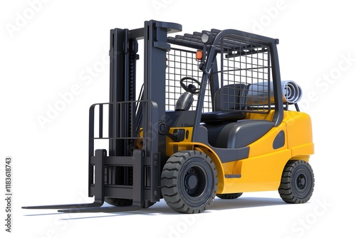 © Real Stuff PNG, Fototapeta premium Yellow Forklift with Protective Cage and Propane Tank.