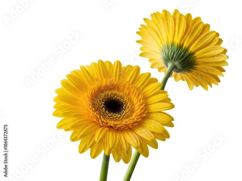 © sunlight789, Naklejka premium Yellow Gerberas Flowers Isolated on White Background, Daisy Like, Spring Blooms