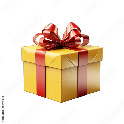 © Futureaz, Obraz premium Yellow Gift Box with Red Bow Isolated on Transparent or White Background, PNG