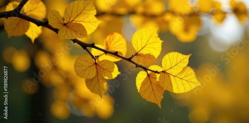 © สิริวุฒิ นาคโคตร, Fototapeta premium Yellow gingko tree with dried pine needles stuck to its branches, leaf, dry