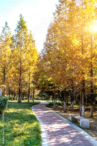 Naklejka premium Yellow ginkgo forest in Jinqiu Park