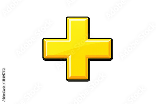 Obraz premium Yellow glossy 3d plus sign symbol, adding inclusion, positive concept on...