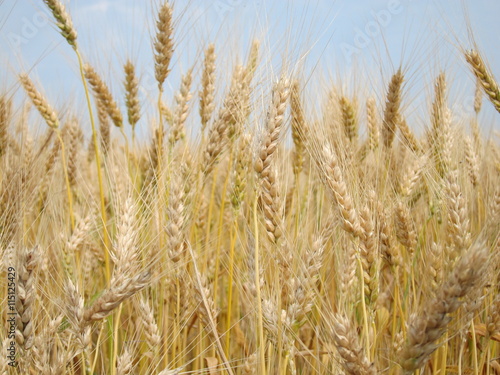© watcherfox, Fototapeta premium Yellow golden barley ears in the field against the sky