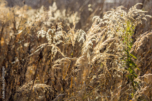 Fototapeta premium Yellow grass on landscape in the sun in autumn