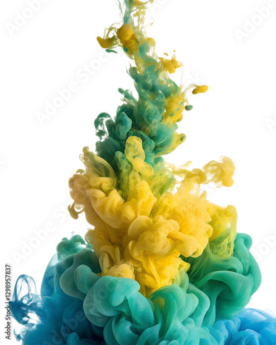 Obraz premium yellow green blue abstract liquid ink with png background