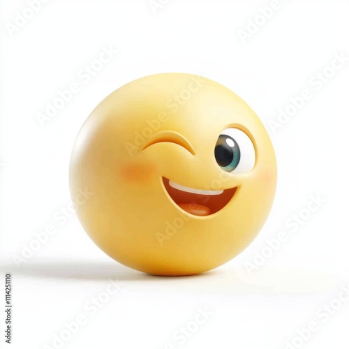 © Roey, Fototapeta premium Yellow Happy Emoji on White Background, Shadow-Free Surface. Round Shape with Colored Eyes and Mouth in High-Resolution 3D Render.