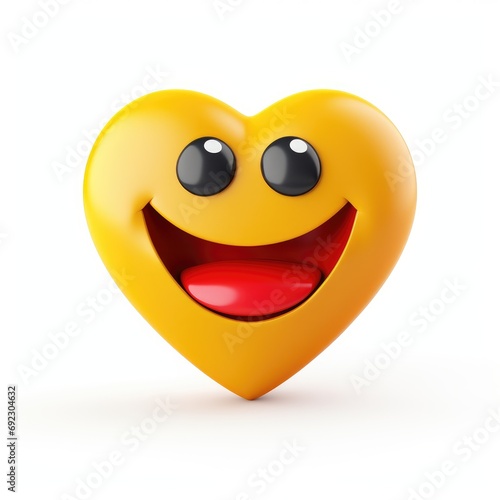 Fototapeta premium Yellow heart emoji with smiley face on white background