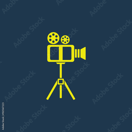 © bharatmanoj, Obraz premium Yellow icon of Video Camera on dark blue background. Eps.10