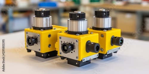 Fototapeta premium Yellow Industrial Inspection Cameras on Table