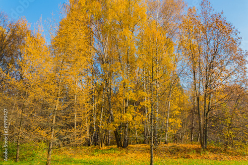 Fototapeta premium Yellow larch tree at autumn