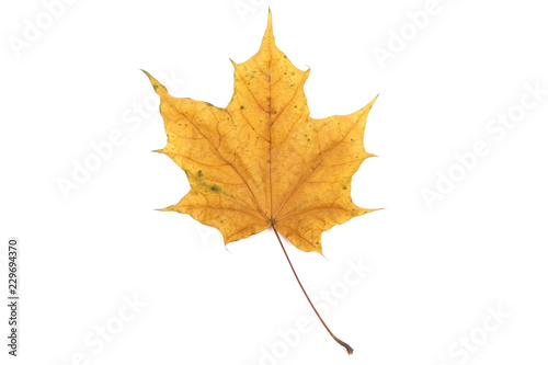 Fototapeta premium Yellow leaf on white background