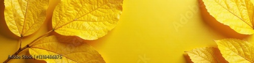 © OneWayPhoto, Fototapeta premium Yellow leaf with gold foil texture, metallic, gold foil, leaf