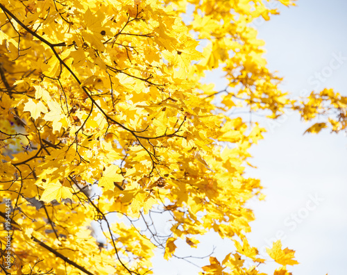 © Airi, Obraz premium yellow leaves and sunny day in autumn