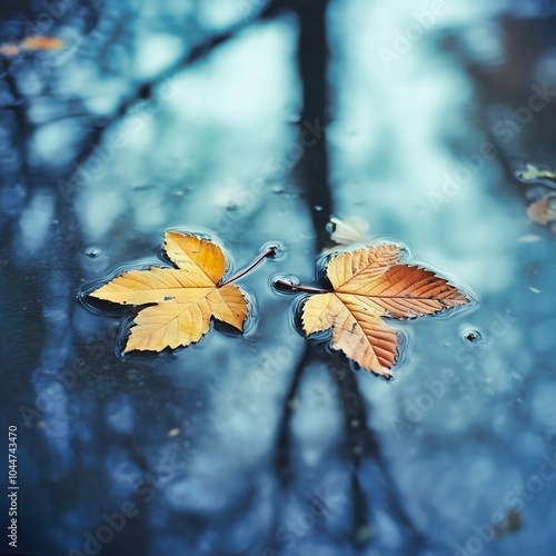 Obraz premium Yellow Leaves in a Puddle with Tree Reflection
