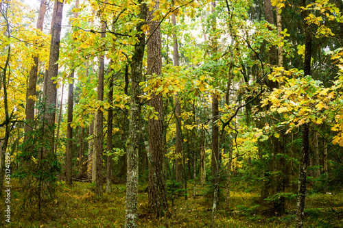 © сергей шохалевич, Fototapeta premium yellow leaves in the forest