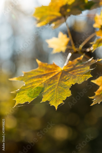 Obraz premium Yellow leaves on a tree branch in autumn