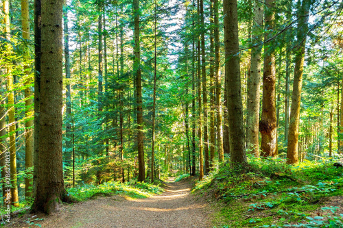 © sosiukin, Obraz premium Yellow leaves on the alley in autumn forest