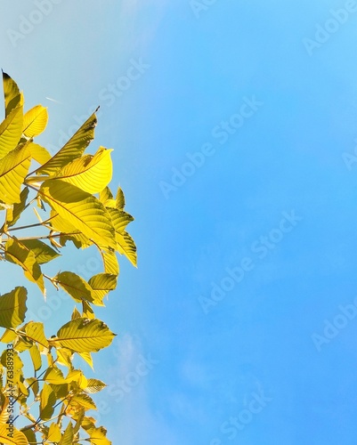 © Kar, Obraz premium Yellow leaves with blue sky background