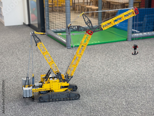 © Marina Chernivetskay, Obraz premium Yellow lego crawler crane model