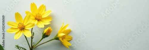 © Sathaporn, Fototapeta premium Yellow linaria flowers against a light gray background with subtle shadows, yellow petals, nature, delicate blooms
