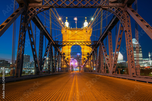 © egokhan, Obraz premium Yellow Line on Cincinnati Bridge