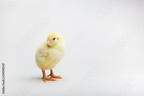 © Petr Smagin, Fototapeta premium yellow little chick on white background with copy space